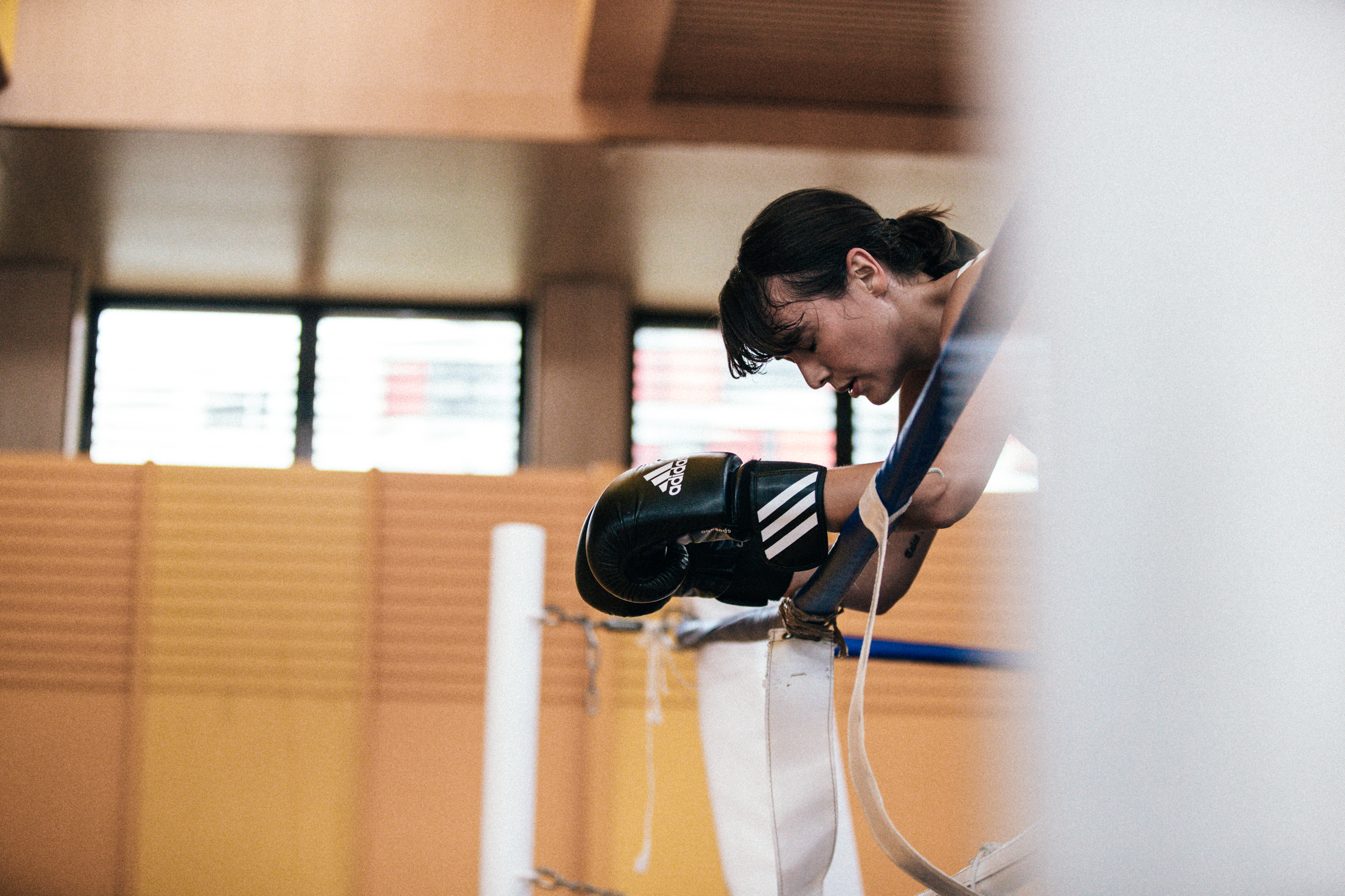 For this adidas Brand campaign, I wanted to find a new way to capture the intensity of training in Muay Thai. Julie was bringing an incredible amount of energy to the movement, so I used photo techniques that would show that power and force in a still image. I chose continuous lighting to create motion blur and capture the energy of the action, and I experimented with extreme angles above, below and inside the fighting, for maximum first person effect.